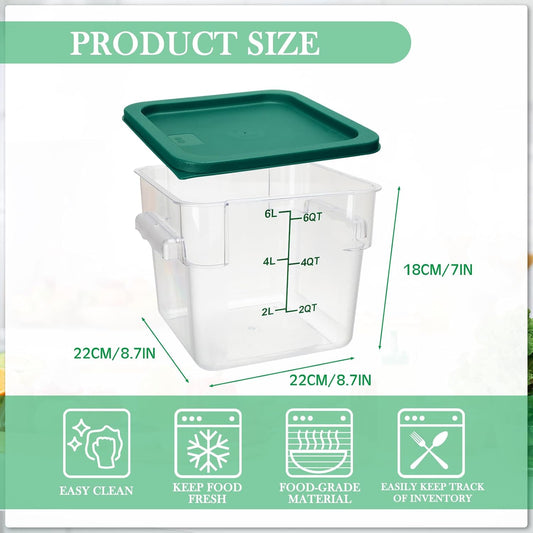 Lallisa 8 Pack 6 Qt Commercial Food Storage Containers with Lids Square Food Storage Container Clear Cereal Storage Containers for Kitchen Freezer Pantry Restaurant Flour Sugar(Green Lids)