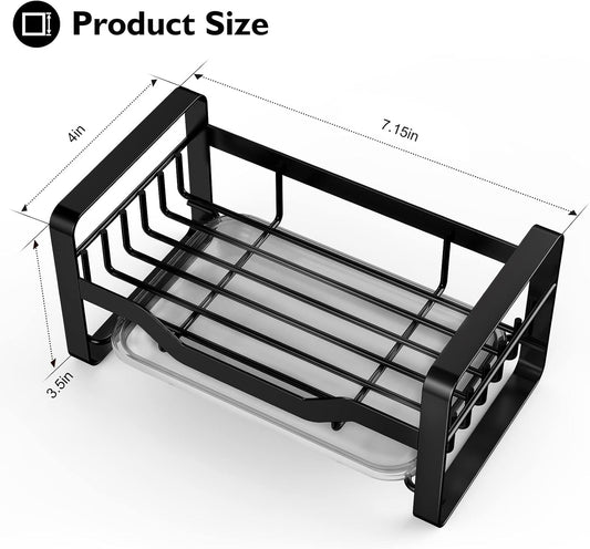 Sponge Holder with Drain Pan - Kitchen Sink Organizer - Sink Caddy Holder - Sink Tray - Soap Holder - Stainless Steel (Black)