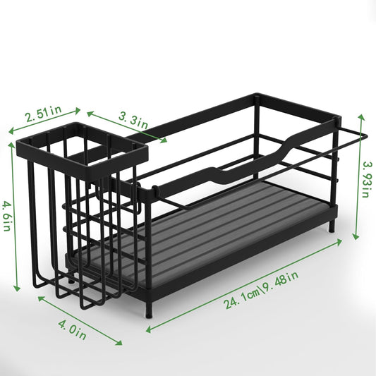 SunnyPoint Never Rust Aluminum Utensil, Sink Cleaning Tools Holder for Kitchen Sink with Drain Board; Dish Wand, Sponge, Soap Dispenser, Utensil Organizer Caddy (BLK)