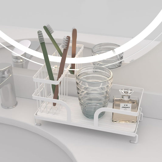 Bathroom Counter Organizer,Perfume Tray,Stone Drying Mat for Kitchen Counter,9.7" x 4.2"x 3.2", Ideal for Bathroom Organizers and Storage, Vanity, Skincare, Present, and More,1PCS White