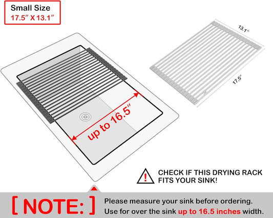 Surpahs Over Sink Foldable Multipurpose Roll-Up Dish Drying Rack, Silicone Wrapped Stainless Steel, Warm Gray, 17.5" x 13.1"