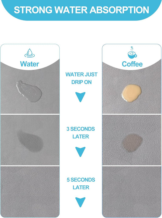 Dish Drying Mat for Kitchen Counter, 16"x24" Dish Drying Pad with Non-slip Rubber Backed, Hide Stain Anti Absorbent for Kitchen Counter, Drying Mat for Coffee Machine Dish Rack (Grey)