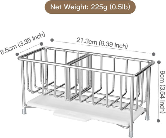 Kitchen Sink Sponge Holder, 304 Stainless Steel Soap Dispenser Caddy Organize, Kitchen Sink Brush Caddy Holder with Removable Drain Tray