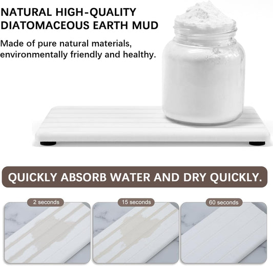 Bathroom Counter Organizer,Perfume Tray,Stone Drying Mat for Kitchen Counter,9.7" x 4.2"x 3.2", Ideal for Bathroom Organizers and Storage, Vanity, Skincare, Present, and More,2PCS White