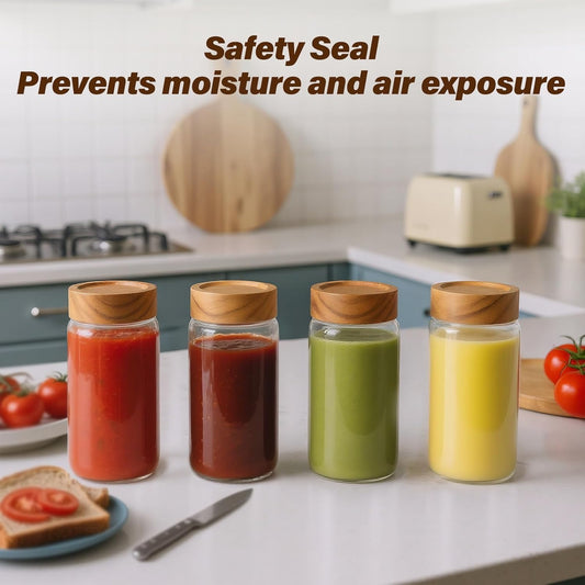 6 -Piece 13 oz Food-Grade Glass Mason Jars with Acacia Wood Lids, Sealable Waterproof, Transparent Easily Stackable for Overnight Oats, Spice Storage & Snack Organizing