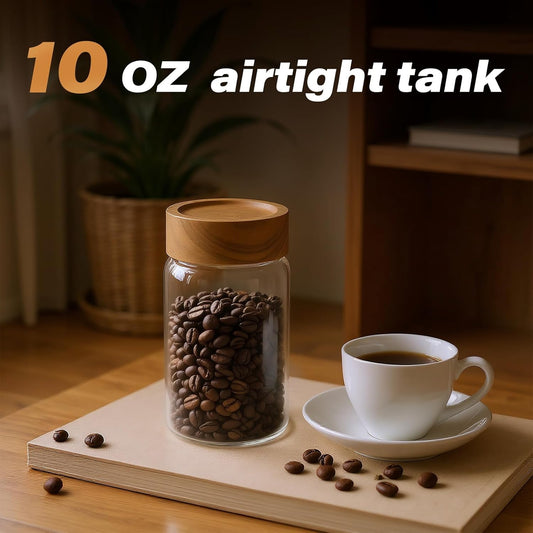 2-Piece 10 oz Food-Grade Glass Mason Jars with Sturdy Acacia Wood Lids, Sealable Waterproof, Transparent Easily Stackable for Overnight Oats, Spice Storage & Snack Organizing