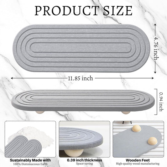 Instant Dry Sink Caddy Organizer, Fast Drying Sink Caddy, Water Absorbing Stone Sponge Holder for Kitchen and Bathroom Countertop with Natural Loofah and Wooden Feet