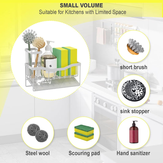 Maifan Sink Caddy Sponge Holder for Kitchen with Brush Holder and Stainless Steel Self Drain Tray, Rustproof Kitchen Sink Organizer for Sponge, Soap Dispenser Storage Accessories