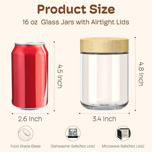 6 Pack 16oz Overnight Oats Containers with Bamboo Lids, Glass Jars with Airtight Lids for Meal Prep, Wide Mouth Mason Salad Jars, Glass Food Storage Container for Yogurt Chia Snacks Spice Sugar