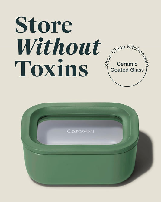 Caraway 6pc Glass Food Storage Set – 6.6 Cup Food Containers (6) - Ceramic Coated - Non Toxic, Non Stick with Lids - Microwave Safe - Sage
