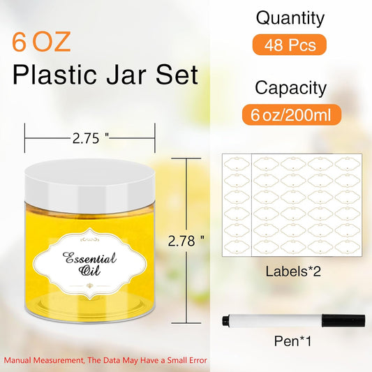 Plastic Jars 6 OZ, 48 Pcs Plastic Jars with Lids Round Wide Mouth Slime Containers with White Lids Empty Small Storage Jar for Travel, Home Kitchen Food, Arts Crafts