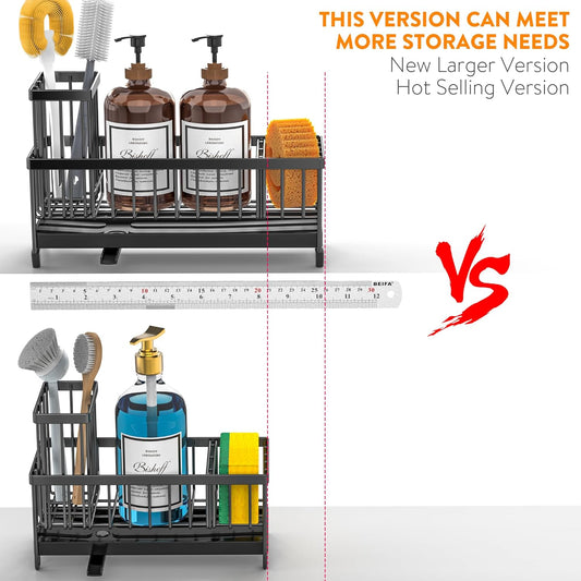 Cisily Extra Large Black Sponge Holder for Kitchen Sink, Sink Caddy Organizer with High Brush Holder, Kitchen Countertop Organizers and Storage Essentials, Rustproof 304 Stainless Steel