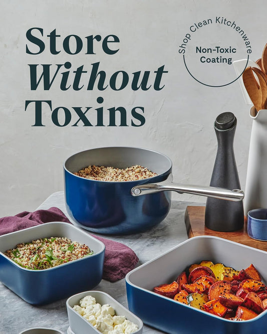 Caraway 2pc Glass Food Storage Set - 2.6 Cup Food Containers (2) - Non-Toxic Ceramic-Coated Glass - Air Release Technology - Compact & Stackable Design - Navy