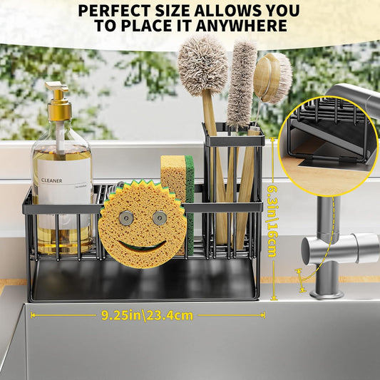Cisily Sink Caddy With Smiley Face Sponge Holder, 304 Stainless Steel Rustproof(Black)