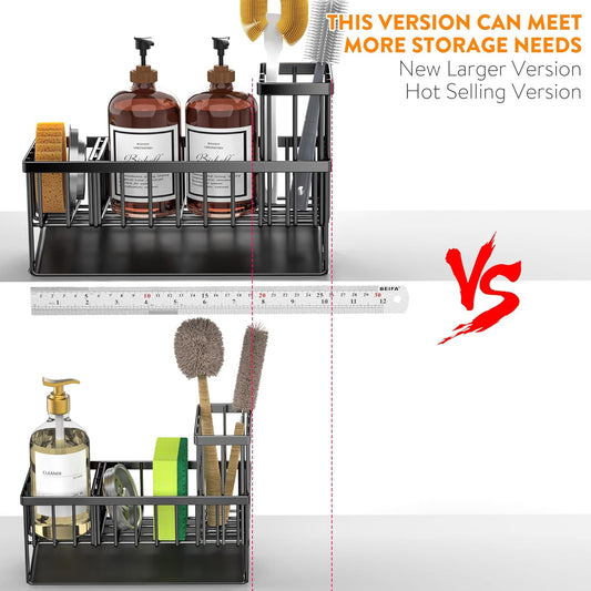 Cisily Extra Large Kitchen Sink Caddy Organzier with High Brush Holder, Sponge Holder for Sink, 304 Rustproof Stainless, Kitchen Countertop Soap Dispenser Organizer For Decor and Accessories
