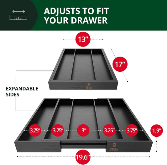 ROYAL CRAFT WOOD Luxury Bamboo Kitchen Drawer Organizer - Silverware Organizer - Utensil Holder and Cutlery Tray with Grooved Drawer Dividers for Flatware and Kitchen Utensils (5 Slot, Black)