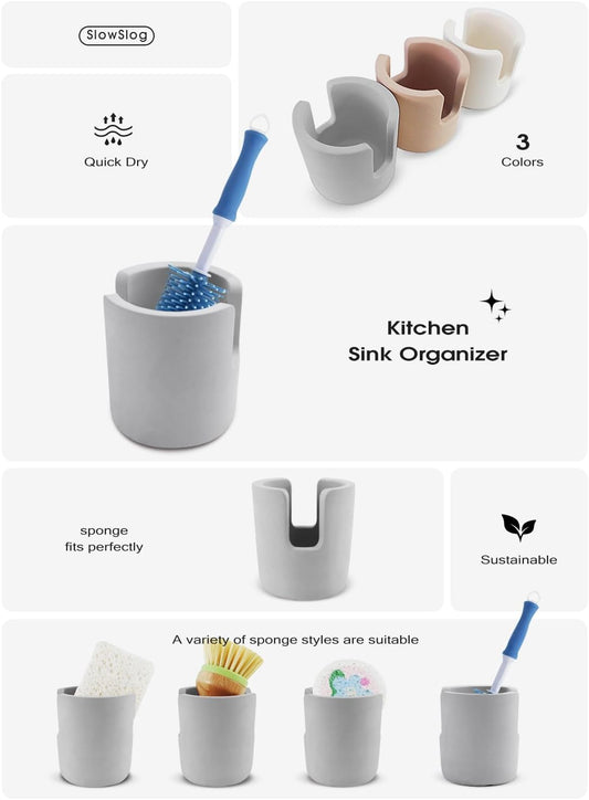 Double Sponge Holder, 2 Slot Diatomite Stone Sponge Holder, Absorbent Sponge Stand for Kitchen Sink, Quick Dry Sponge Caddy Kitchen Sink Organizer, White