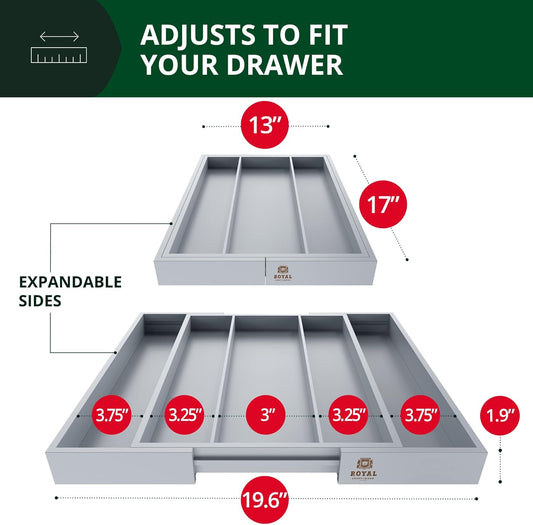 ROYAL CRAFT WOOD Luxury Bamboo Kitchen Drawer Organizer - Silverware Organizer - Utensil Holder and Cutlery Tray with Grooved Drawer Dividers for Flatware and Kitchen Utensils (5 Slot, Gray)