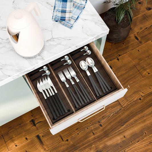 JANE EYRE Utensil Drawer Organizer, Cutlery Tray Silverware Flatware Storage Divider for Kitchen, Mesh Wire with Non-slip Foam Feet, 5 Component, Black