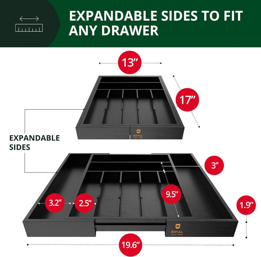 ROYAL CRAFT WOOD Luxury Bamboo Kitchen Drawer Organizer - Silverware Organizer - Utensil Holder and Cutlery Tray with Grooved Drawer Dividers for Flatware and Kitchen Utensils (9 Slot, Black)