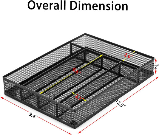 Silverware Organizer Metal Mesh, Small Drawer Organizer, Utensil Cutlery Tray for kitchen drawers, Flatware Organizer with 5 Compartment, Black(9.3"*12.6")