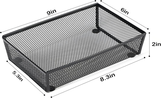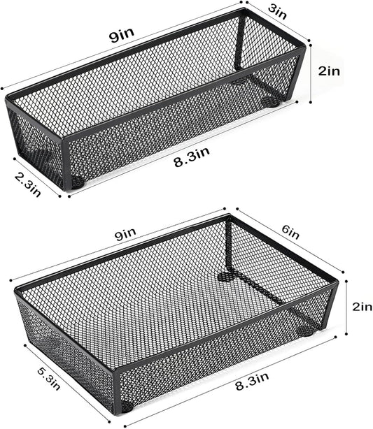 BYCY Silverware Drawer Organizer, Mesh Utensil Organizer for Kitchen Storage, Black Steel Metal Mesh Tray for Flatware Fork Spoon Knife (9x6-4P-Black)