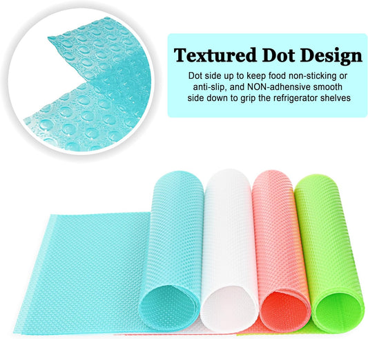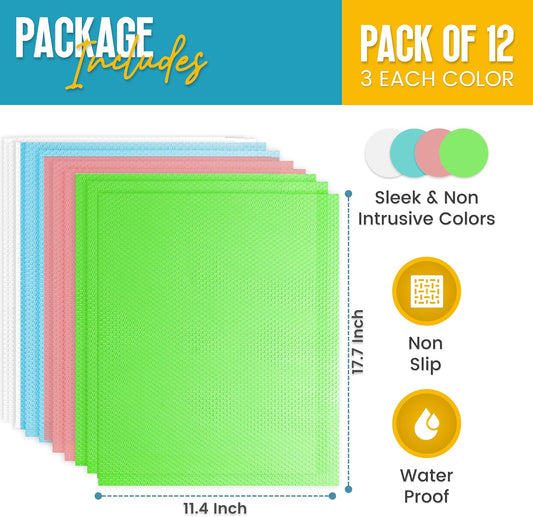 Refrigerator Liners for Shelves (12 Pack) by Linda’s Essentials - Non-Adhesive Shelf or Drawer Liner, BPA-Free Fridge Mats for Kitchen & Cabinets, Easy to Clean, Ideal Household Essentials(MultiColor)