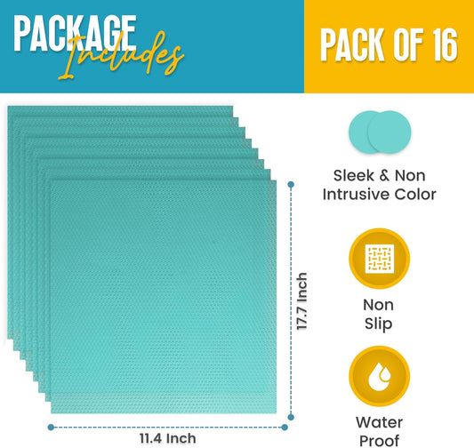 Refrigerator Liners for Shelves (16 Pack) by Linda’s Essentials - Non-Adhesive Shelf or Drawer Liner, BPA-Free Fridge Mats for Kitchen & Cabinets, Easy to Clean, Ideal Household Essentials (Blue)