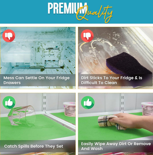 Refrigerator Liners for Shelves by Linda’s Essentials - Easy to Clean Fridge Liner with Spill Protection Fridge Shelf Liners & Drawer Liner, Nonslip BPA-Free Refrigerator Mats (Green Roll)