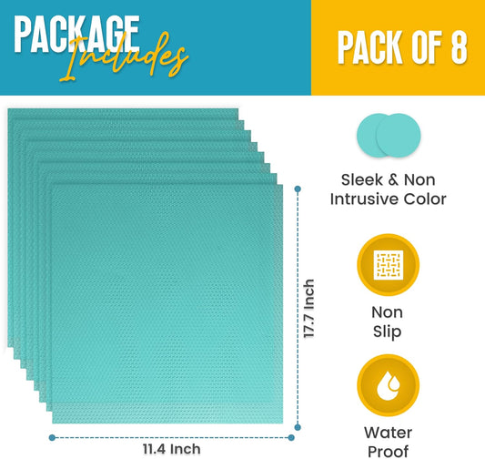 Refrigerator Liners for Shelves (8 Pack) by Linda’s Essentials - Non-Adhesive Shelf or Drawer Liner, BPA-Free Fridge Mats for Kitchen & Cabinets, Easy to Clean, Ideal Household Essentials (Blue)