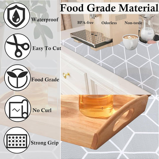 Shelf Liners for Kitchen Cabinets and Drawers, Non-Adhesive and Anti-Slip, Waterproof and Easy to Clean, Durable EVA Cabinet Mat for Refrigerator, Cupboard, Table (Grey, 17.5" W x 196.8" L)