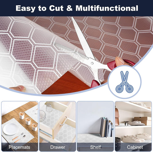 Shelf Liners for Kitchen Cabinets and Drawers, Non-Adhesive and Anti-Slip, Waterproof and Easy to Clean, Durable EVA Cabinet Mat for Refrigerator, Cupboard, Table (Clear, 11.8" W x 196.8" L)