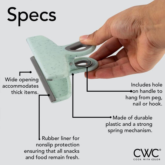 COOK WITH COLOR Bag Clips - Heavy Duty Chip Clip and Refrigerator Magnet Clips for Food Storage with Air Tight Seal Grip, Mint, Pack of 4 Large Clips