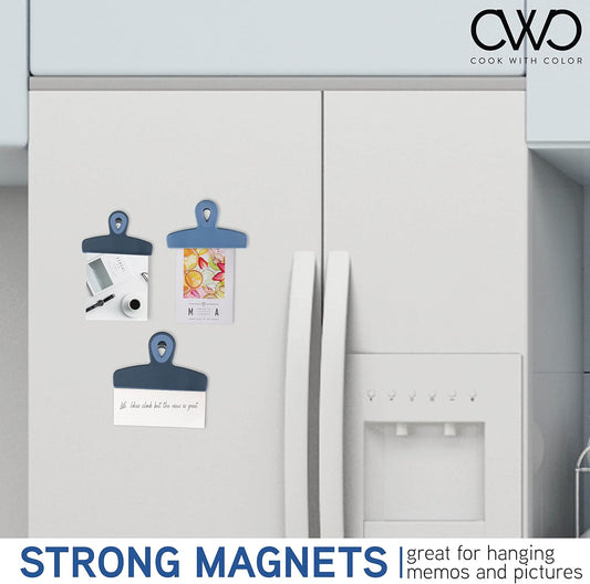 COOK WITH COLOR Bag Clips - Heavy Duty Chip Clip and Refrigerator Magnet Clips for Food Storage with Air Tight Seal Grip, Blue Ombre, Pack of 4 Large Clips