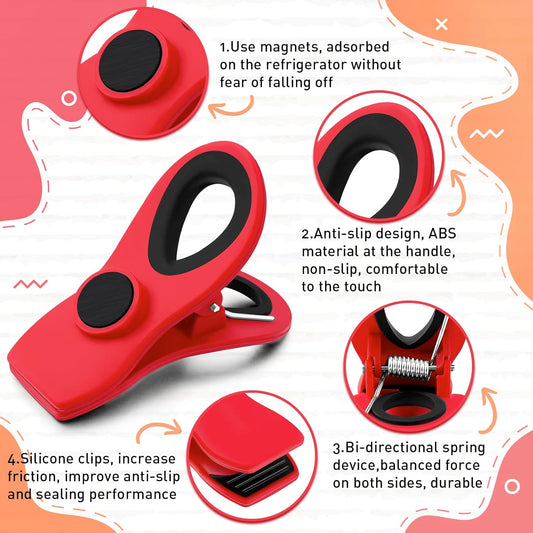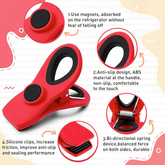 FINDMAG 12 Pack Chip Clips, Red Magnetic Bag Clip for Food Packages, Airtight Clips with Handle Durable Bag Sealers for Metal Surface, Garden, Fridge, Potatoes, Bread, Kitchen