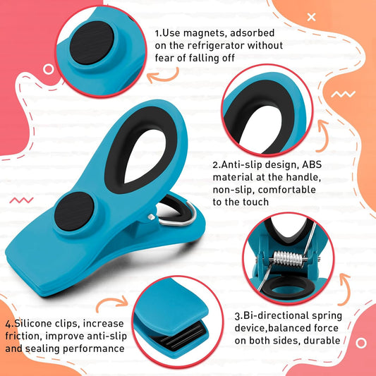 12 Pack Chip Clips, Colorful Magnetic Clip, Plastic Bag Clips with Airtight Seal Grip for Bread, Food Bags, Garden Plants, Snack Bags and Kitchen Organization