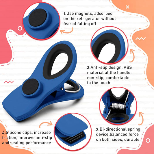 FINDMAG 12 Pack Chip Clips, Big Food Clips Blue Magnetic Clip, Magnetic Bag Clips with Airtight Seal for Chips, Bread, Snacks, Fridge Organize, Kitchen Storage, Note
