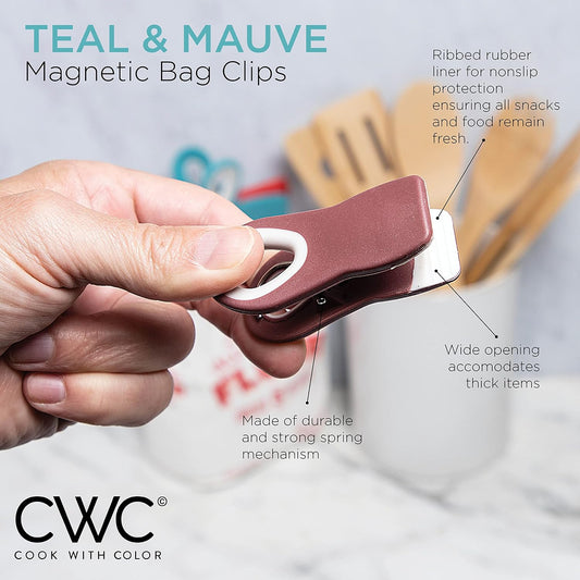 COOK WITH COLOR Bag Clips - Heavy Duty Chip Clip and Refrigerator Magnet Clips for Food Storage with Air Tight Seal Grip, Teal and Mauve, Pack of 8