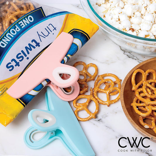 COOK WITH COLOR Bag Clips - Heavy Duty Chip Clip and Refrigerator Magnet Clips for Food Storage with Air Tight Seal Grip, Bright Colors, Pack of 4 Large Clips