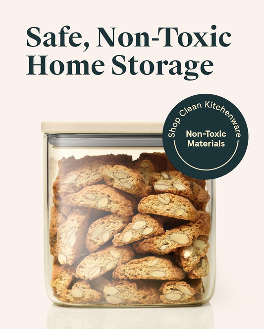 Caraway 4qt Glass Airtight Food Storage Container with Lid – Non-Toxic, BPA-Free Kitchen Storage Container – Stackable, Space-Saving Airtight Container for Dry Goods and More - Cream