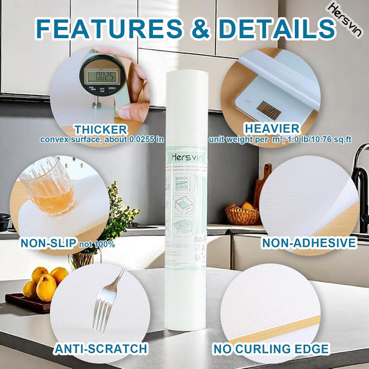 Shelf Liners 18 in x 20 ft EVA Drawer Mats, Non-Adhesive Cupboard Protector, Kitchen Cabinet Lining Fridge Liner (Clear Stripe, 45.3x610cm)