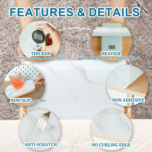 Shelf Liners 20 in x 20 ft EVA Drawer Mats, Non-Adhesive Cupboard Protector, Kitchen Cabinet Lining Fridge Liner (White Marble Stripe, 50.8x610cm)