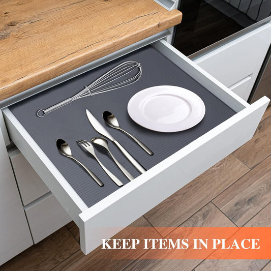 Shelf Liners for Kitchen Cabinets, Non-Adhesive Drawer Liner, 17.5 Inch x 10Ft(120 Inch), Non-Slip, Strong Durable, Waterproof for Kitchen Cabinet Liner, Shelves, Storage, Desks, Dark Gray