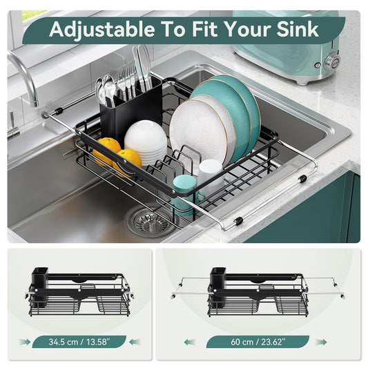 Over the Sink Dish Drying Rack,In Sink Dish Drying Racks,Expandable Dish Rack Over Sink Counter,Adjustable Dish Drainer for Inside Sink with Utensil Holder, Stainless Steel Dish Strainer Large Size