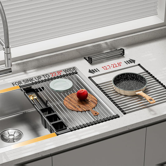 304 Stainless Steel Over Sink Counter Top Perfect Dish Drainer, Extendable Drainage Basket Drying Rack for Fruit, Vegetables, and Dishes - Corrosion-Resistant, Space-Saving