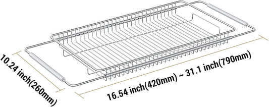 Dish Drying Rack, Stainless Steel Extendable Organizer for Kitchen Counter, Dish Dryer Rack for Inside Sink 304 Stainless Steel Adjustable 16.54" to 31.1" in Sink Dish Drying Rack 1(10.2" x 16.5")