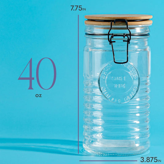 Glass Storage Containers with Airtight Lids - 40 Ounce Mason Jar Storage Containers for Cereal, Coffee & Rice - Pantry Organizing Canister Set of 3 for Kitchen