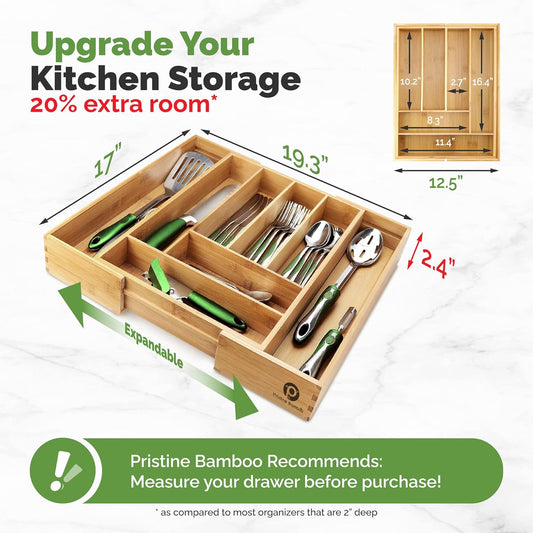 Silverware Tray for Drawer Organizer,Kitchen Drawer Organizer,Cutlery Organizer in Drawer, Flatware Silverware Holder, Expandable Adjustable Wooden Dividers (8-slots)