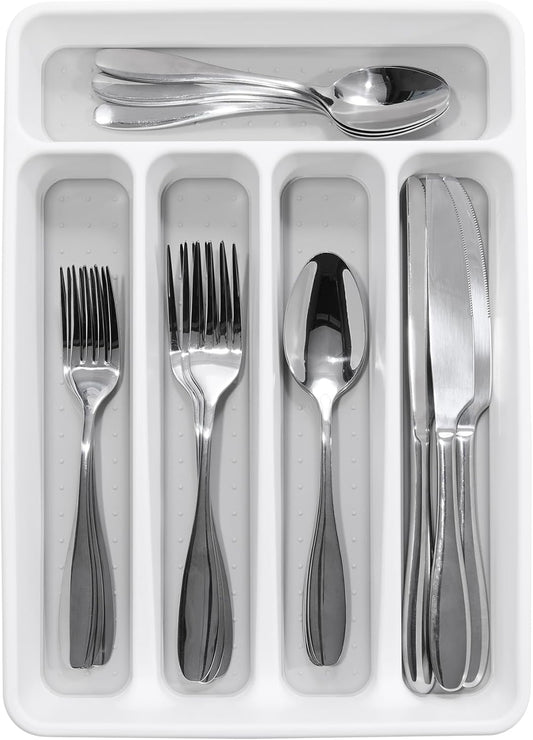 Simple Houseware Expandable & Adjustable Cutlery Drawer Organizer - Large Utensil and Flatware Tray for Kitchen Drawers, White