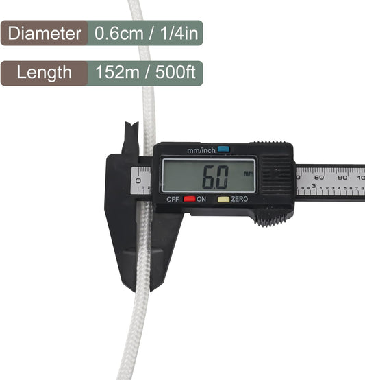 1/4 Inch White Polyester Rope - 500 Foot White Low Stretch Polyester Rope for Hiking, Kayaking, Tarps, Camping
